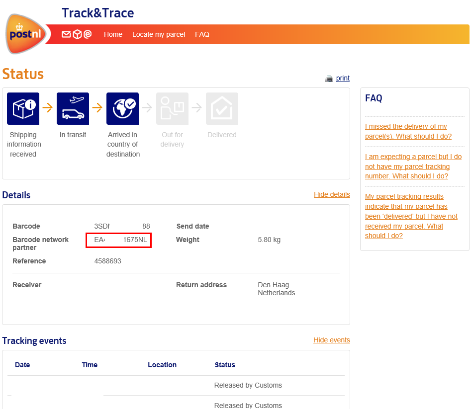 스쿠버 스토어 EMS, PostNL EMS 조회, PostNL, EMS, EMS조회,