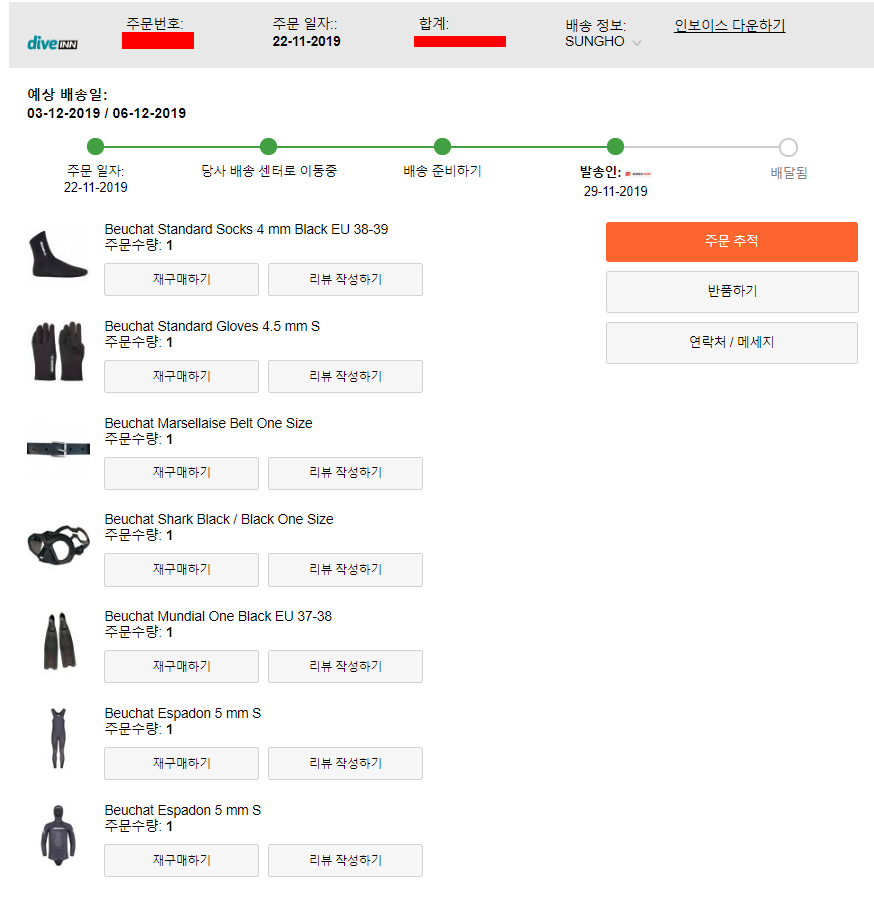 스쿠버 스토어직구, 프리다이빙, 스쿠버 스토어 EMS 행방조회,